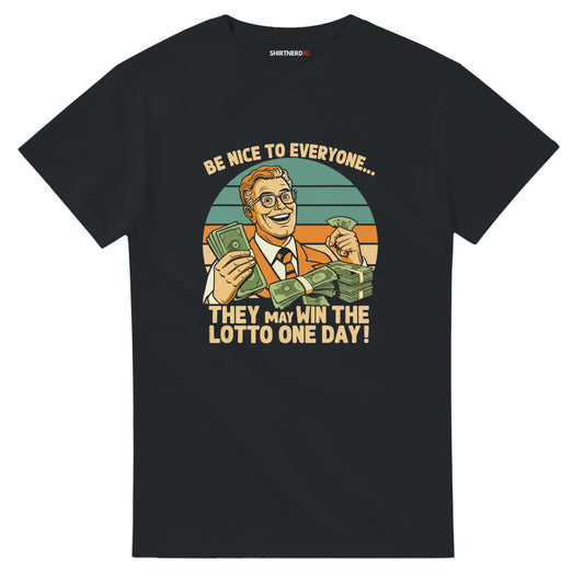 Be Nice to Everyone! They May Win The Lotto One Day! - Funny Graphic tee for Big Men - up to 5XL