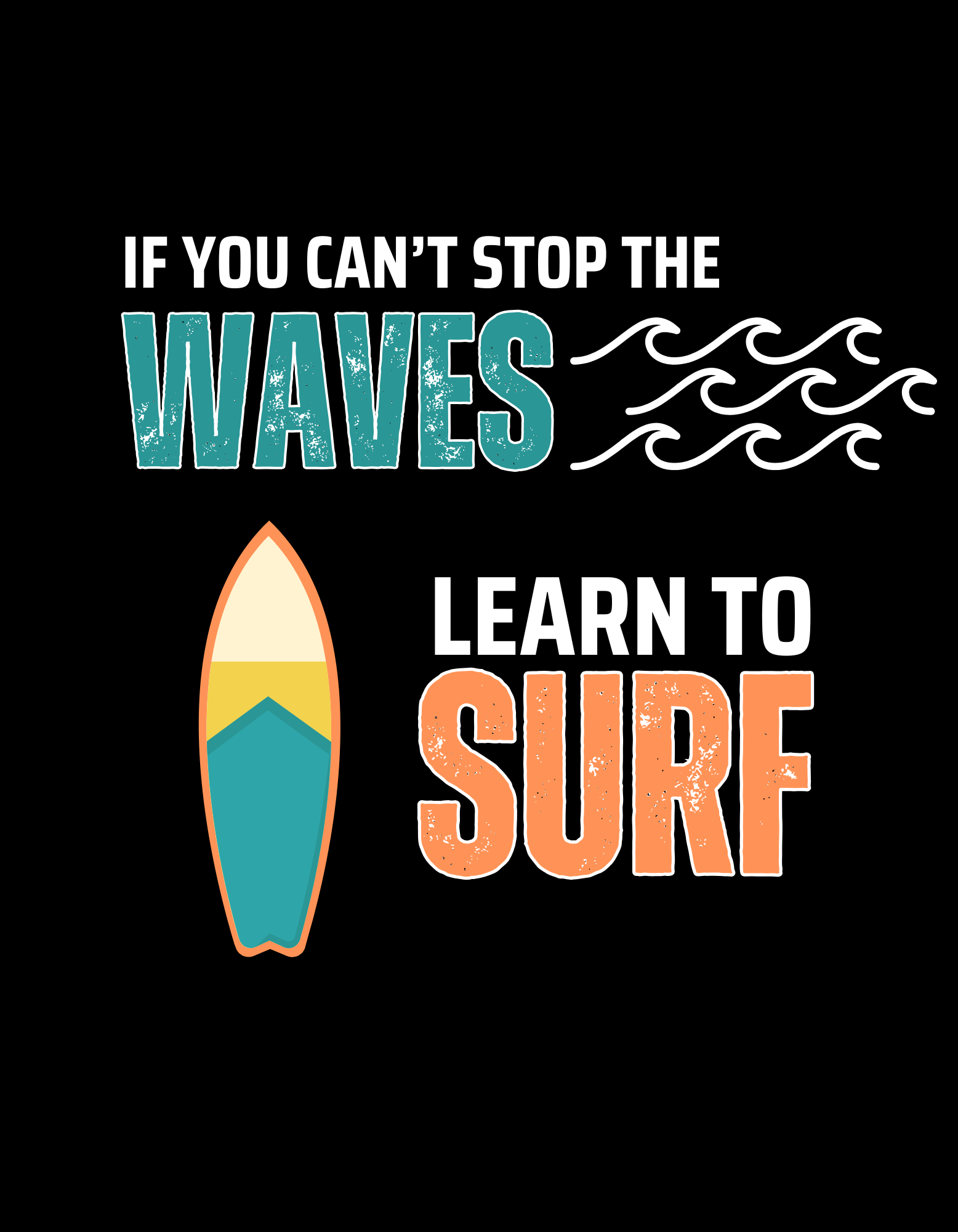 Ride life’s waves with style in our "If You Can’t Stop the Waves, Learn to Surf" tee! Featuring a sleek surfboard and minimalist wave graphic, this black shirt is all about embracing challenges and going with the flow. Perfect for beach lovers, free spirits, and anyone who knows the power of adapting to life’s tides. Comfortable and available in sizes up to 5XL, it’s a versatile statement piece for casual outings or ocean-inspired vibes. Grab yours and show the world you’re ready to surf through anything!