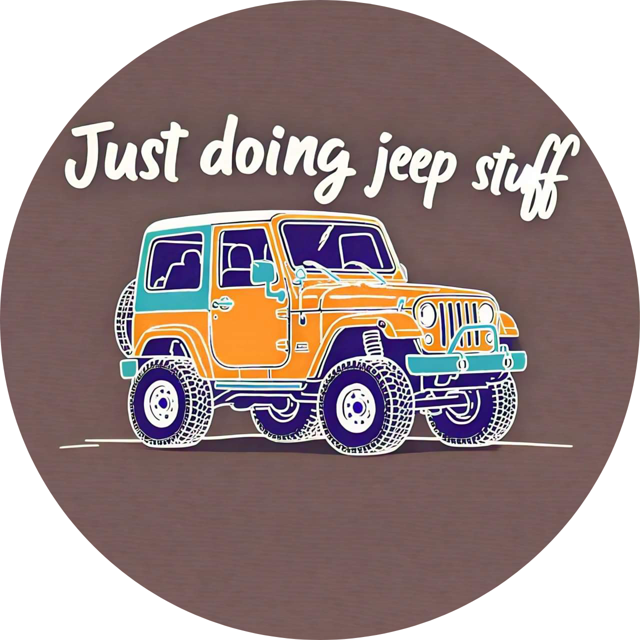 Unleash your off-road spirit with this one-of-a-kind design: an orange Jeep sketched with rugged charm, set against a brown circle backdrop, with the tagline, "Just Doing Jeep Stuff." Whether you're scaling rocks, cruising trails, or stuck in the mud (on purpose), this shirt celebrates the Jeep lifestyle in all its adventurous glory.